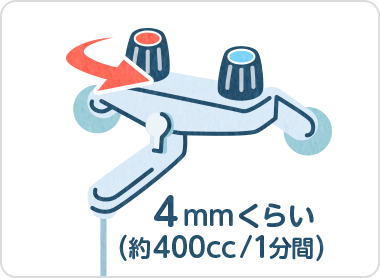※サーモ(温度調整)付混合水栓の場合は、最高温度の位置に設定してください。念のため、約30分後に再度流れる量を確認してください。
