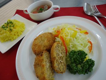 高野豆腐を使用することでミンチカツをヘルシーに仕上げます。